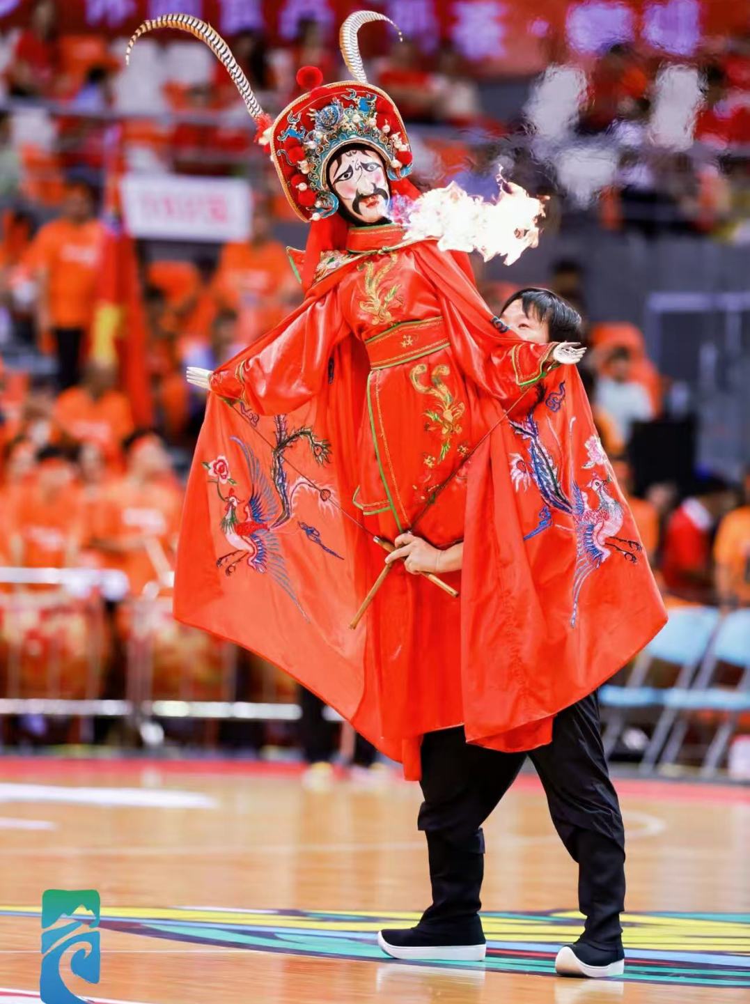 在苍南主场对阵丽水的“浙BA”赛前,苍南新艺术木偶剧团带来的非遗提线木偶戏《火将军变脸》一登场,就以惊艳的视觉冲击让全场观众直呼“震撼”。