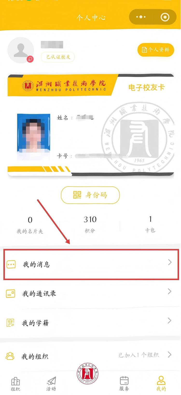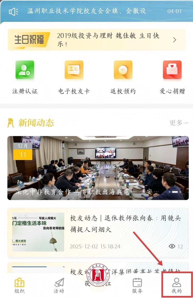 1.进入微信温职校友小程序,点击【我的】