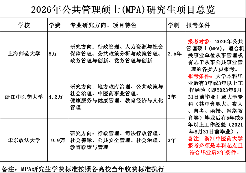 需要报考双证2026年公共管理硕士(MPA)研究生的校友请看过来!!!
